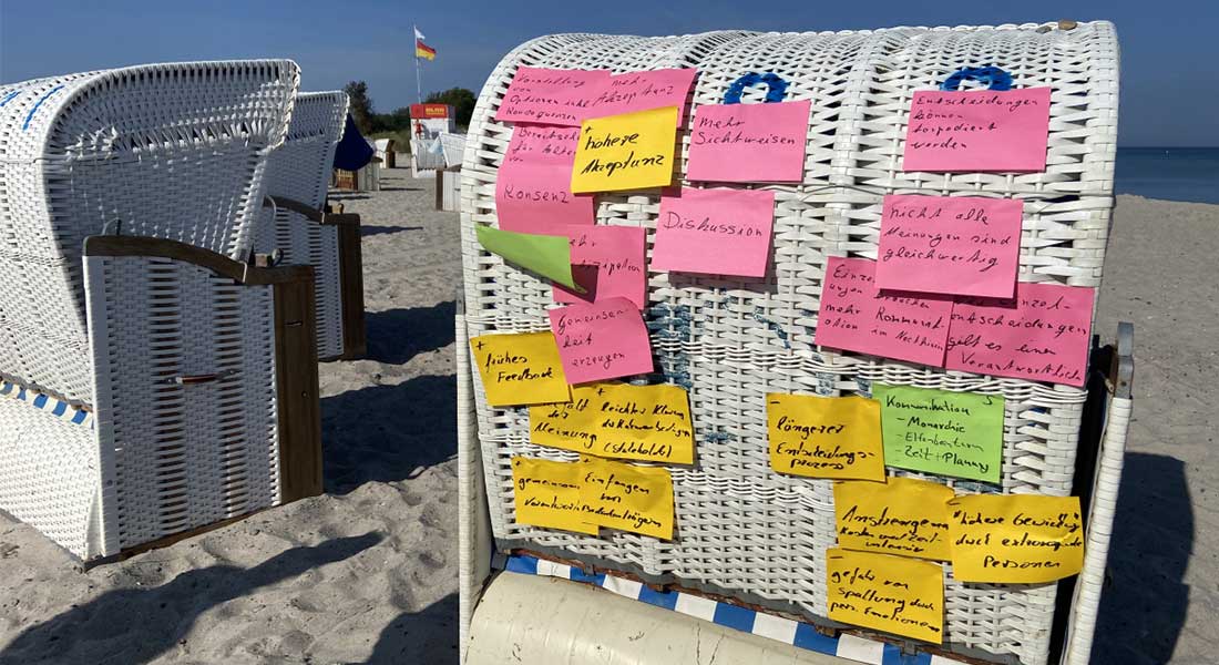 Bei oose am Meer kombinieren wir fundiertes Lernen mit entspannter Atmosphäre: Workshops, Reflexionsrunden und moderierte Formate wechseln sich ab. Es bleibt Raum für Gespräche, neue Perspektiven – und die Ostseeluft.